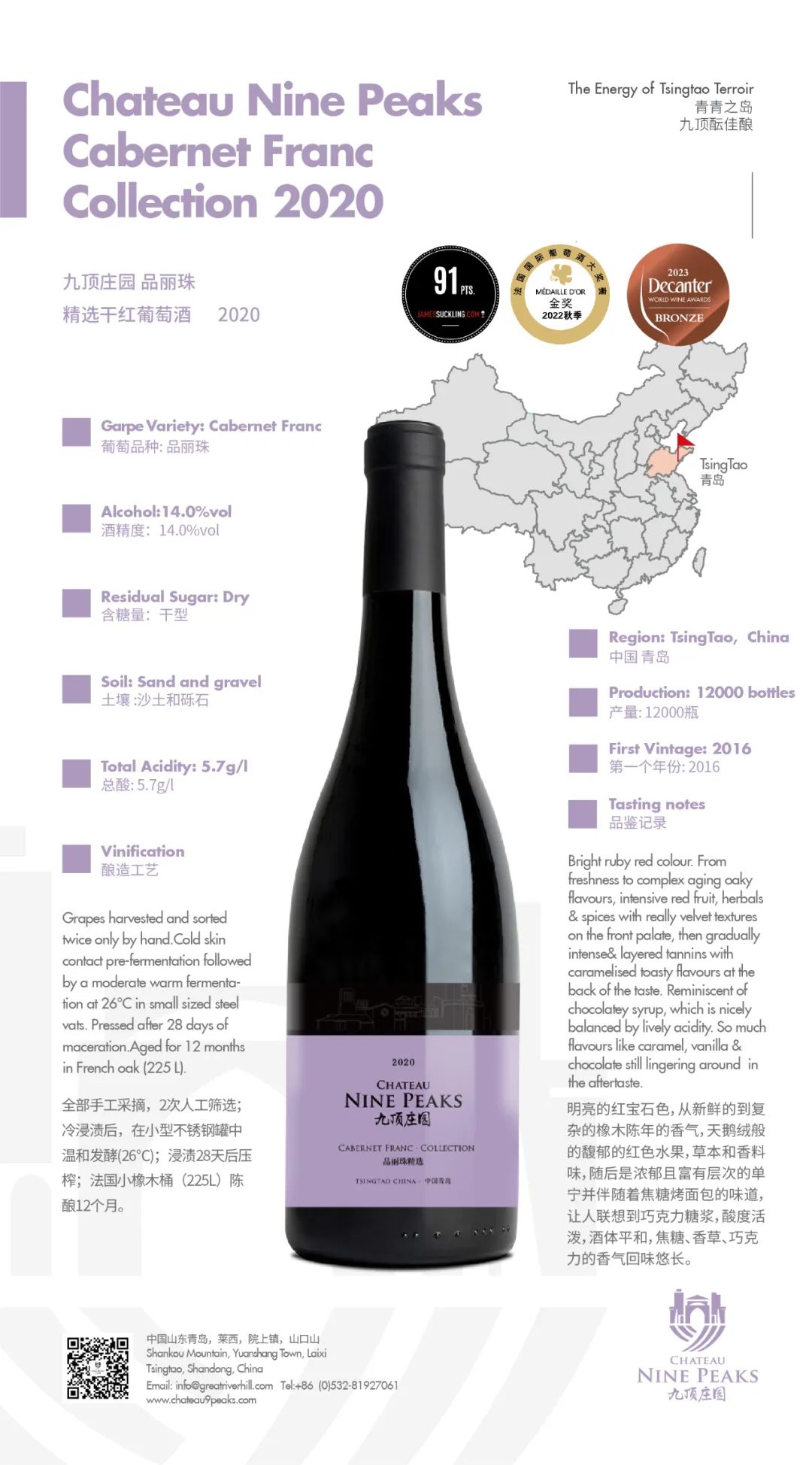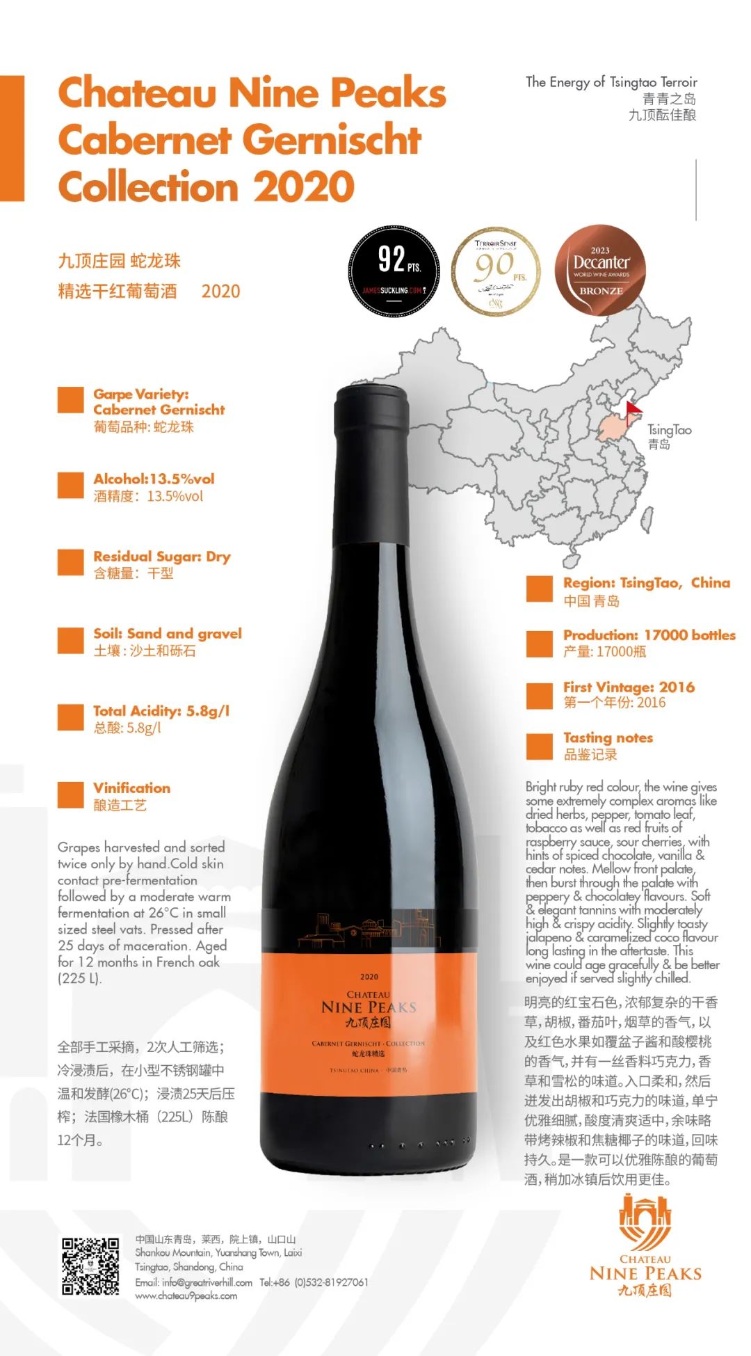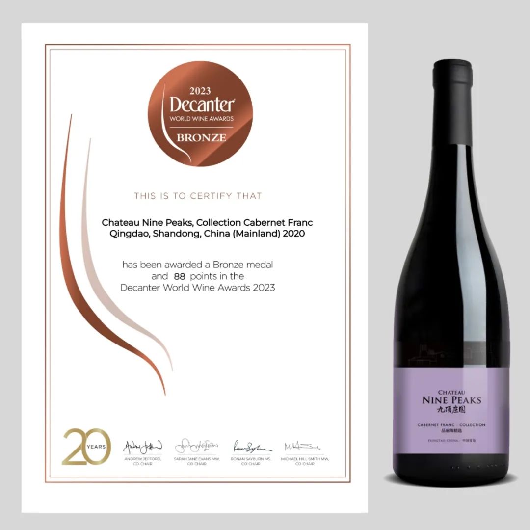 2023年6月9日,世界最大規(guī)模的葡萄酒賽事—Decanter世界葡萄酒大賽(DWWA)2023年的評(píng)審結(jié)果正式公布,九頂莊園3款單一園葡萄酒獲得了3個(gè)銅獎(jiǎng)的好成績(jī)。