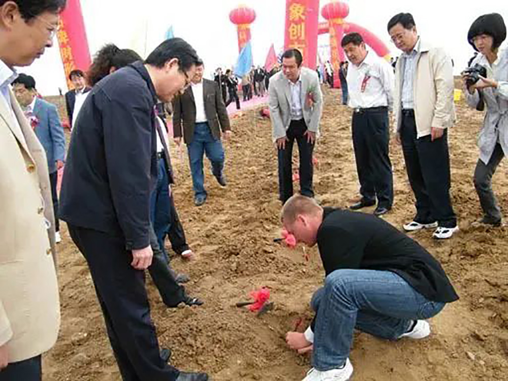 創(chuàng)始人卡爾博士和工地上的小狗合影