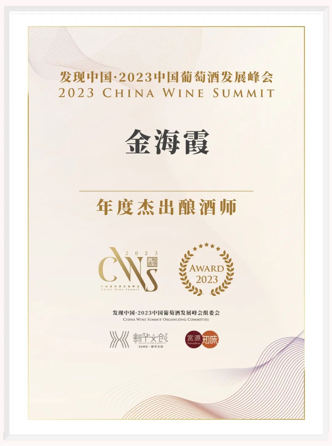九頂莊園釀酒師金海霞,榮獲上海葡萄酒發(fā)展峰會【年度杰出釀酒師】榮譽(yù)。