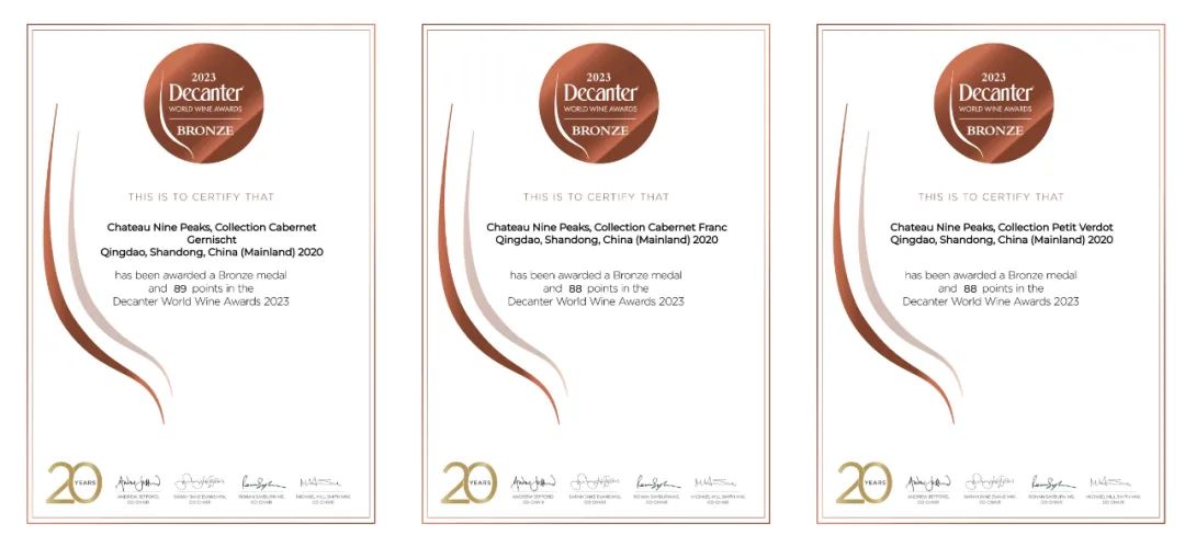 九頂莊園榮獲Decanter世界葡萄酒大賽3枚銅獎。