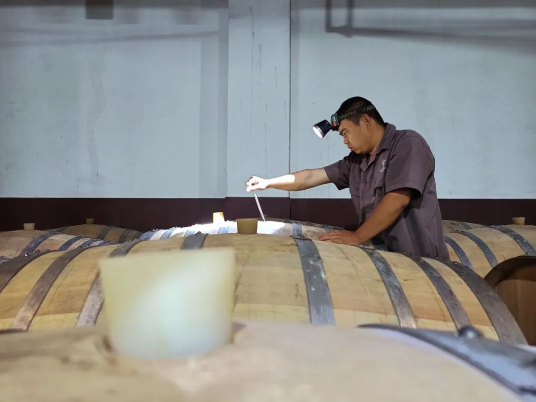 桶內(nèi)發(fā)酵結(jié)束后,我們會持續(xù)8-10個月的攪桶工作,通常1個月2次攪桶。
