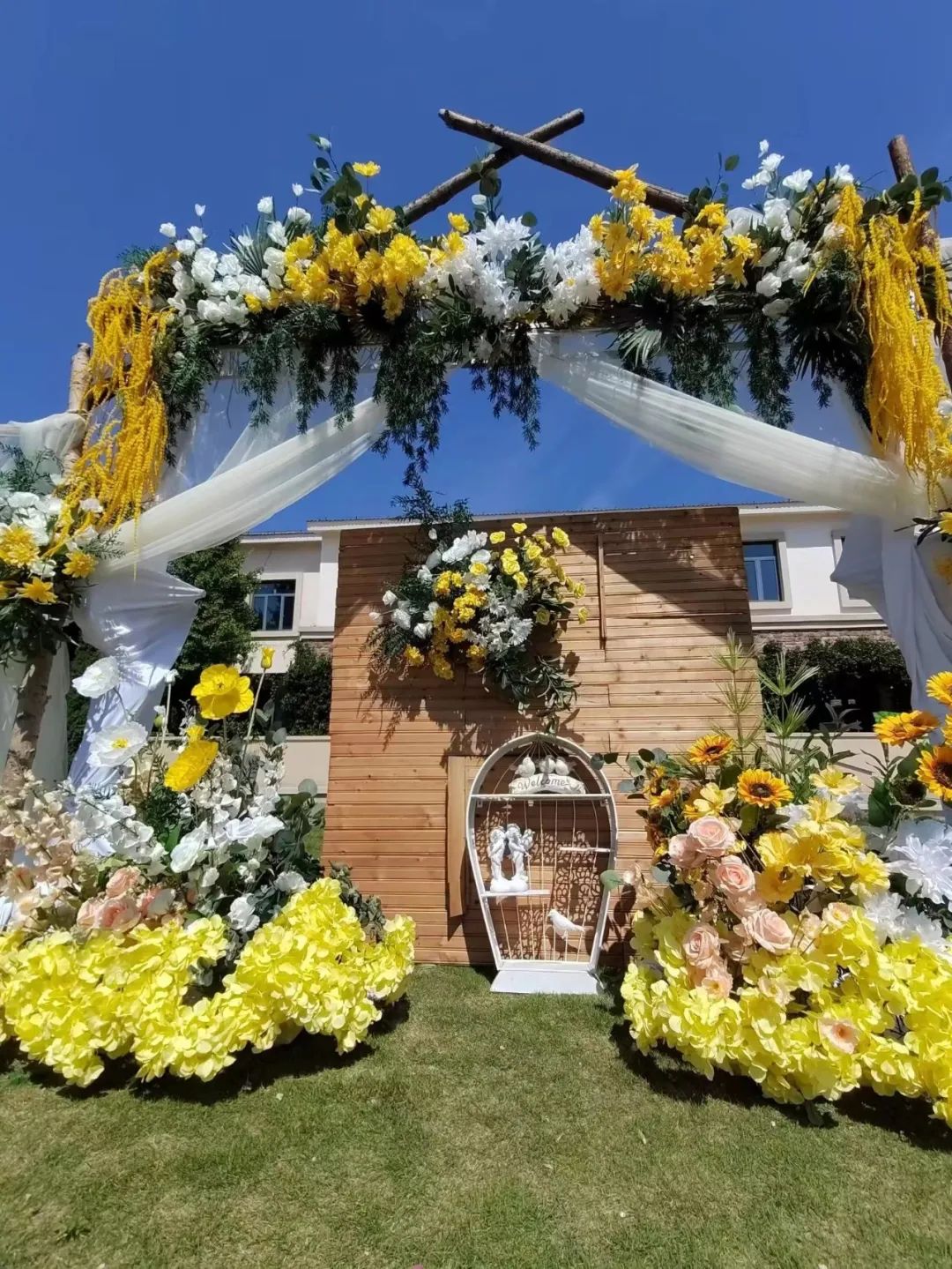 戶外草坪婚禮在九頂莊園舉辦。