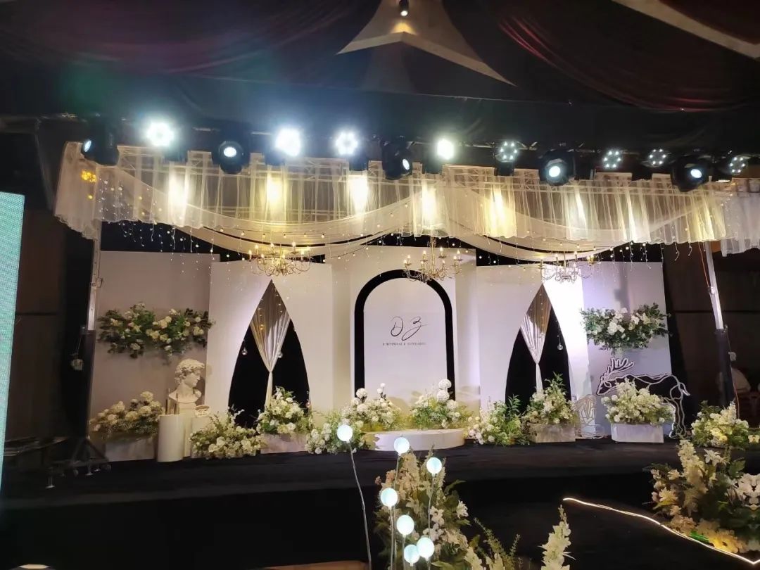 室內(nèi)婚禮在九頂莊園舉辦。