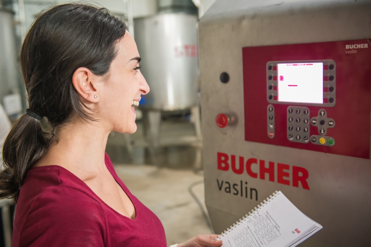 壓榨機裝滿后,我們開始進行壓榨循環(huán),輕輕壓榨葡萄以得到葡萄汁。我們將果汁分成2批,自流汁(葡萄自然流出和低壓循環(huán)中得到)和壓榨汁(通過在2 bar 壓力下得到的葡萄汁)。