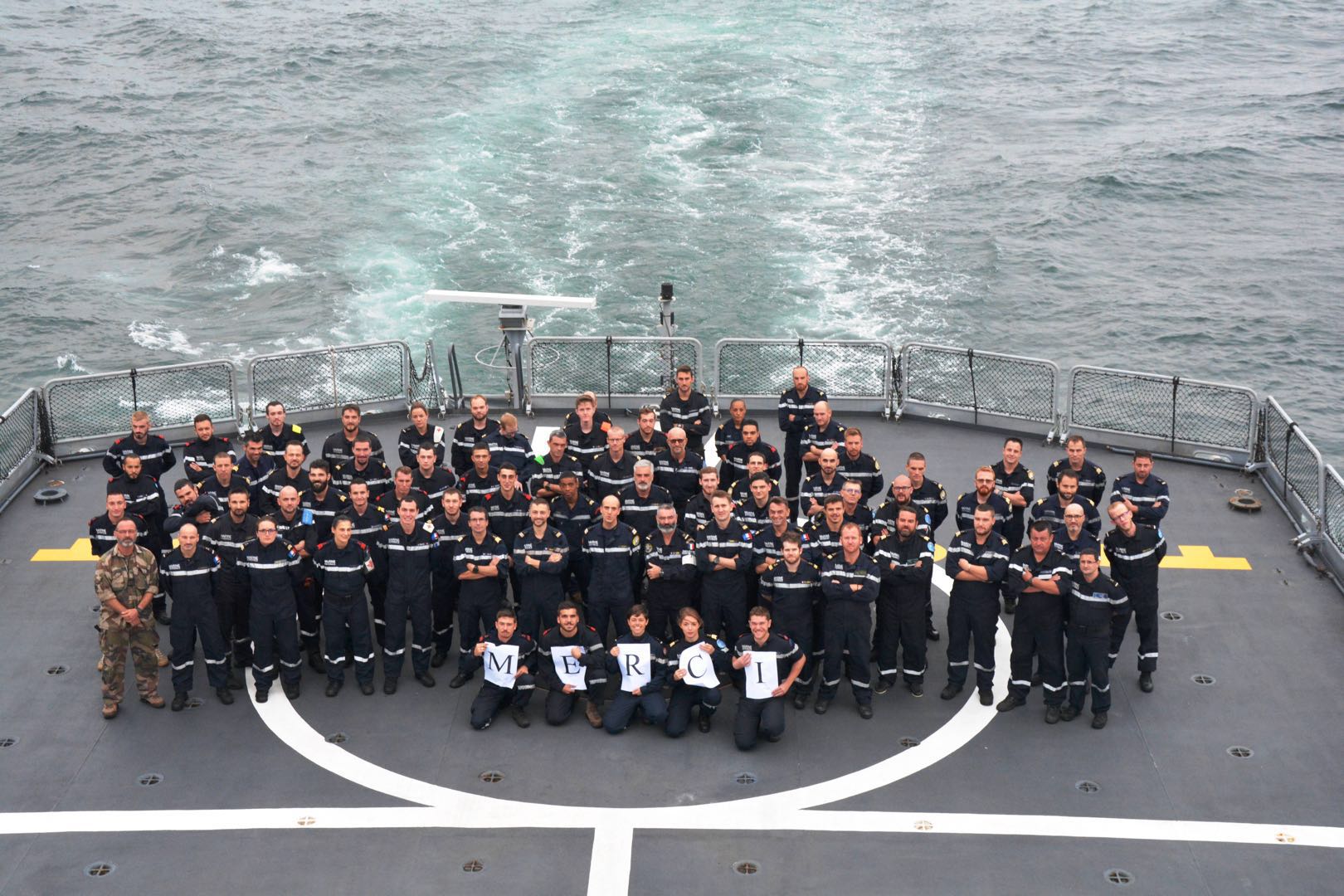 但是,艦上的海員還是給了大家一個浪漫的回禮: “Merci”( 謝謝!)