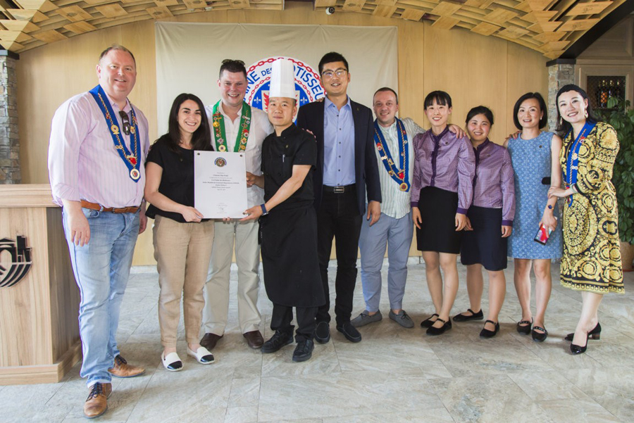 鄧勤(左),法國國際美食會青島分會會長, 青島魯商凱悅總經(jīng)理