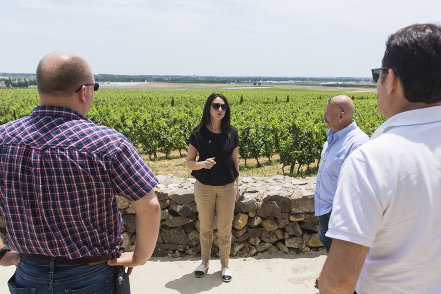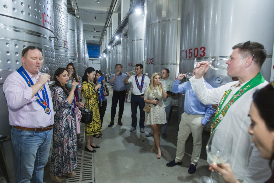 整個活動過程中,九頂莊園的意大利釀酒師丹妮斯親自為來賓做酒莊導(dǎo)游,并介紹午宴配餐的九頂葡萄酒。