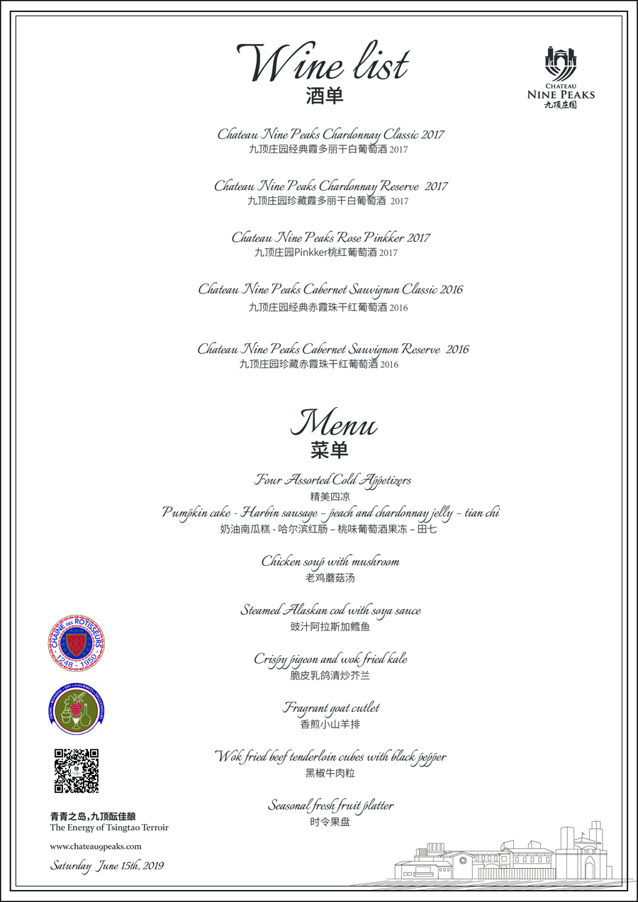 2019年6月15日,由法國國際美食會青島分會召集的活動午宴,在中國九頂莊園舉行。