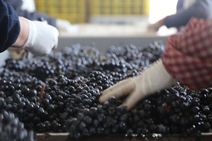 九頂莊園2016年共收獲葡萄418.5噸。其中霞多麗收獲38噸,赤霞珠收獲327噸,品麗珠收獲28噸,蛇龍珠收獲15.5噸。為了保證葡萄漿果的質(zhì)量,我們篩選出21噸葡萄喂了小動物。預(yù)計將來可釀酒36萬瓶。