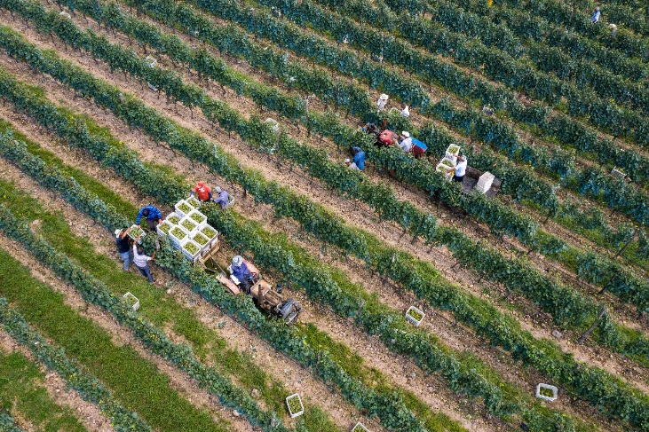 今年,我們共采收了471噸釀酒葡萄,其中白色葡萄收獲96噸,紅色葡萄收獲375噸,預計可出葡萄酒40萬瓶。