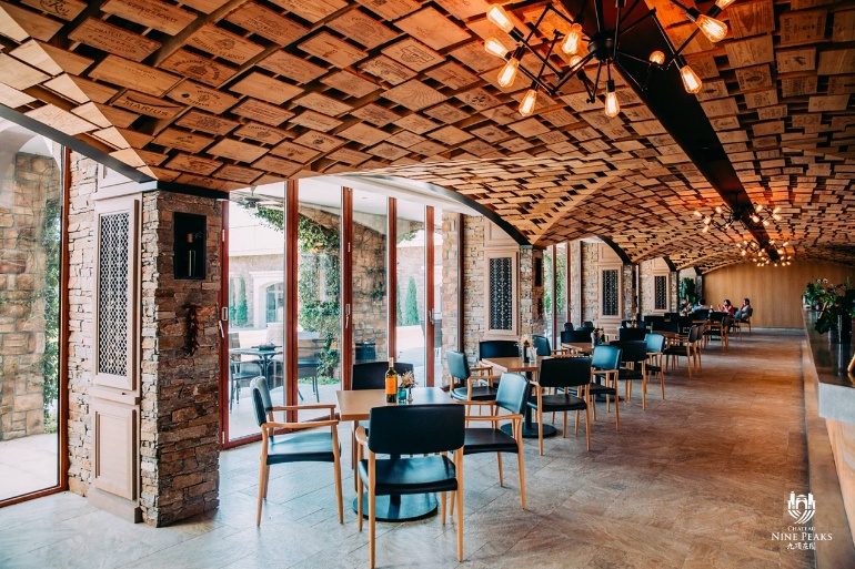 長廊吧位于大堂的左側(cè),不僅僅是一間酒吧或咖啡吧。 這個多用途開放式的酒吧長30米,寬8米,建筑設(shè)計師巧妙利用木質(zhì)葡萄酒盒首創(chuàng)出世界上第一個立體木質(zhì)穹頂。長達(dá)12米的吧臺配合瑪瑙透出的琥珀色暖光又是這個空間的一大亮點(diǎn)。坐落在莊園里面,毗鄰大宴會廳,可通往草坪和庭院,為客人提供多種活動和功能的精心設(shè)計。酒莊莊主十分熱衷與來自四面八方的客人相聚于長廊吧的穹頂之下,與眾葡萄酒愛好者共品佳釀,講述每一塊木板后面酒莊和美酒的故事。